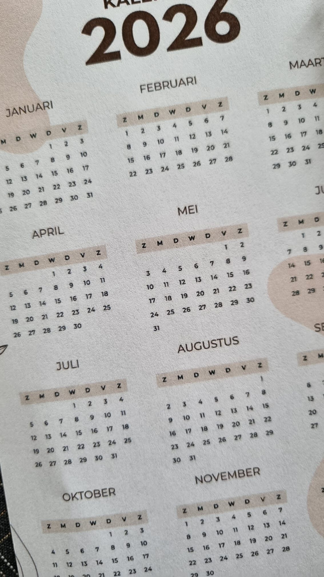 Pre-order de agenda vast, begin november wordt de agenda geleverd.